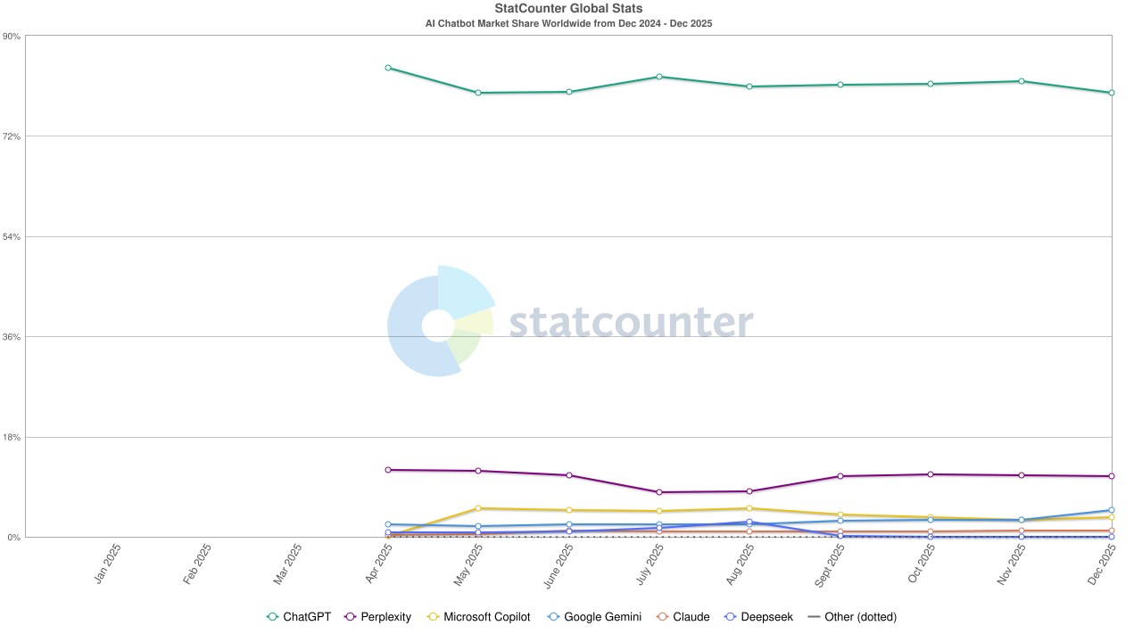 What this chart doesn’t show is that Gemini might actually be close to that of ChatGPT, because, like Microsoft, Google has access to ecosystem surfaces that ChatGPT doesn’t: Gmail, Android, Drive, Docs and YouTube.